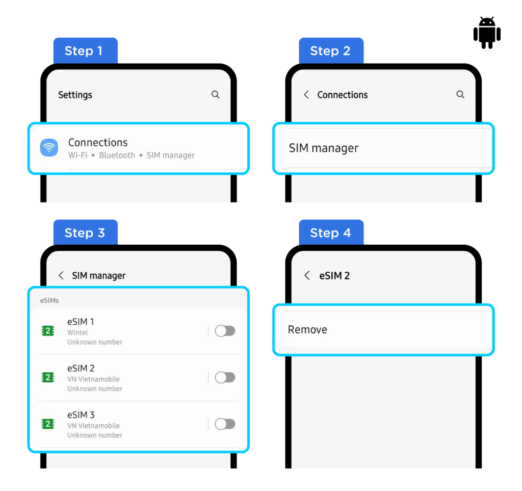eSIM limitations: Be aware that eSIMs can have limitations, and some actions, like deleting them, can be irreversible.